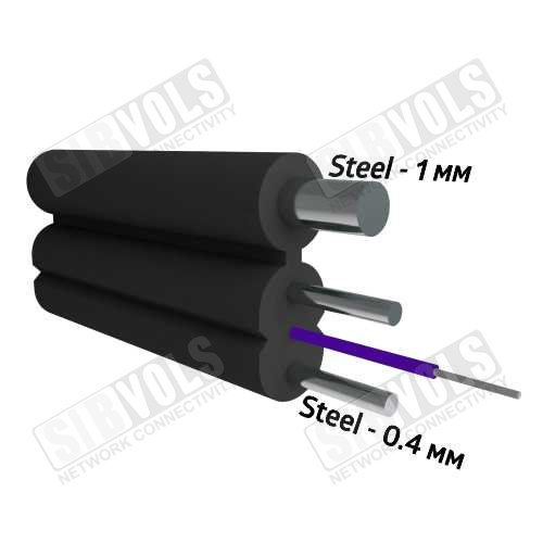 Ключевые особенности данного кабеля заключается в самонесущей конструкции с двумя силовыми элементами: стеклопрутками (FRP) или стальными проволоками (Steel), или комбинированный вариант FRP+ Steel.