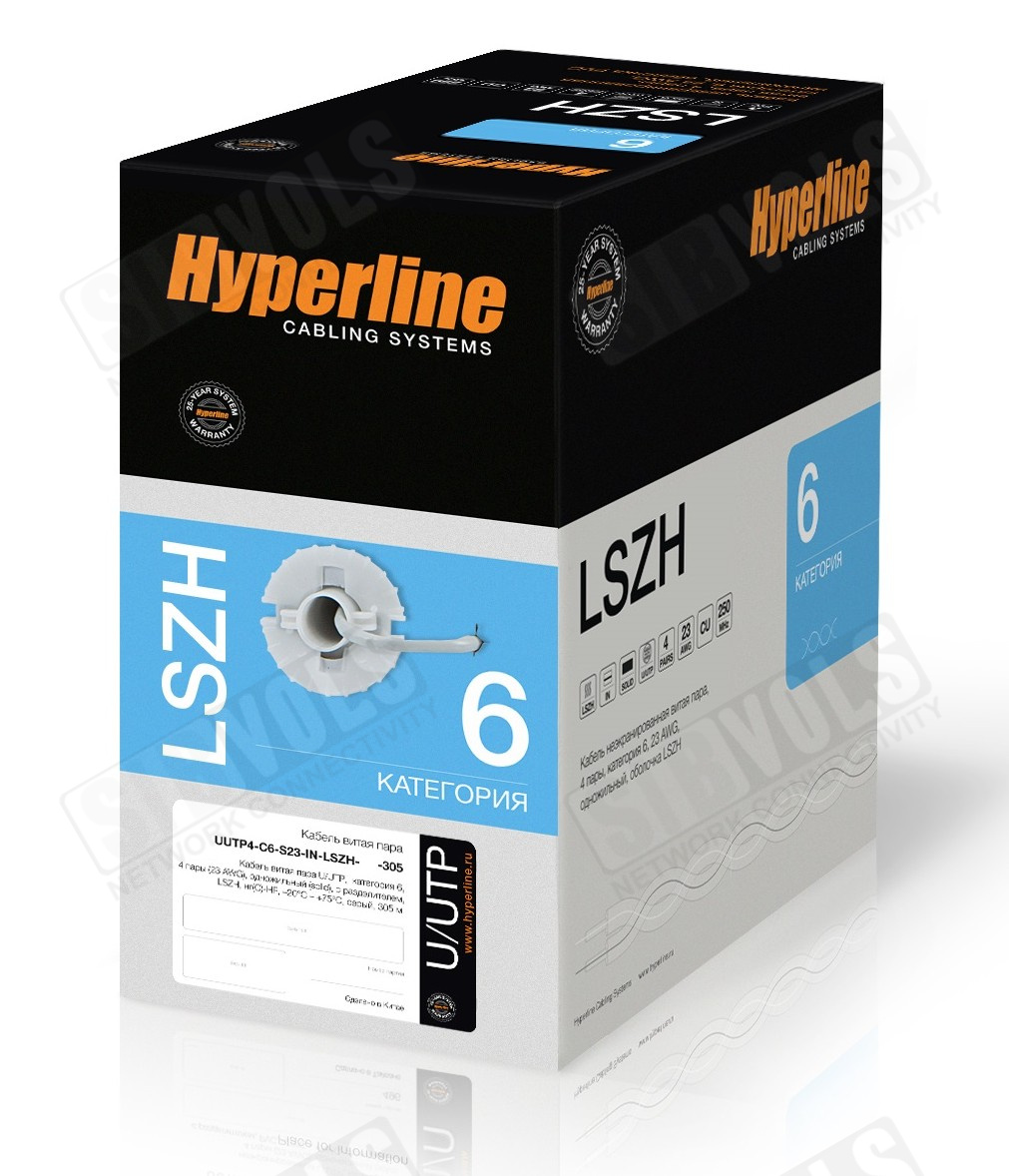 Hyperline UUTP4-C6-S23-IN-LSZH-OR-305 (305 м) Кабель витая пара, неэкранированный U/UTP, категория 6, 4 пары 23 AWG, 4х2х0,55 мм, однопроволочные жилы, с разделителем, LSZH, нг(А)-HF, внутренний -40°C – +75°C, оранжевый, системная гарантия 25 лет