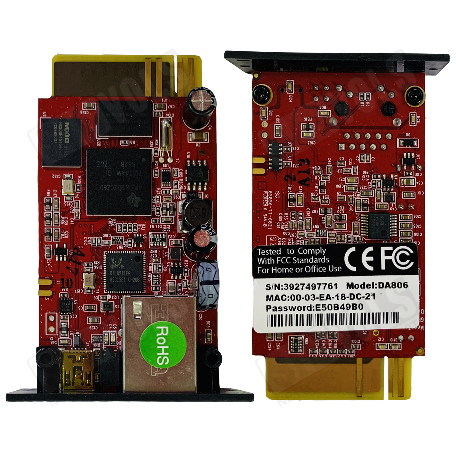 SNMP-карта DA806 для серии SVC ИБП TRX и TPX с возможностью мониторинга температуры, влажности и затопляемости окружающей среды при подключенном соответствующем датчике USB Netfeeler.