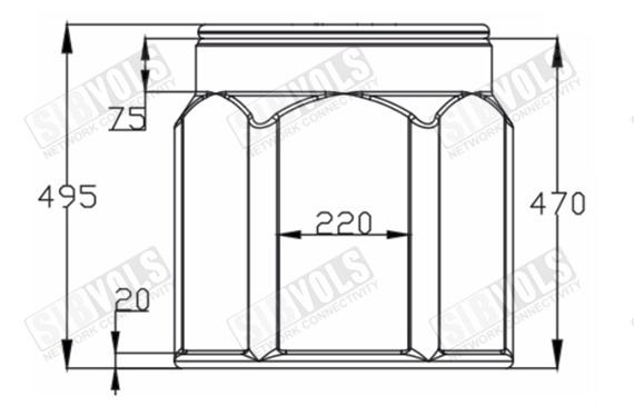 Корпус колодца имеет 6 монтажных площадок для ввода распределительных полиэтиленовых труб кабельной канализации с различных направлений, под углом 60° и 120°. Размер каждой площадки 350х185 мм. Ввод защитных труб диаметром от 25 мм до 110 мм осуществляется через отверстия, которые прорезаются в нужном месте в момент установки колодца.
