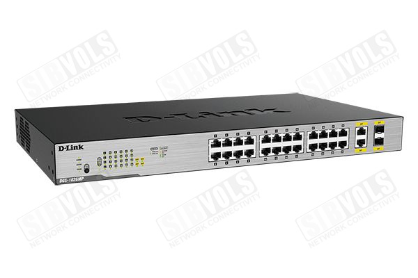 Коммутатор DGS-1026MP с 24 портами 10/100/1000Base-T с поддержкой PoE и 2 комбо-портами 100/1000Base-T/SFP позволяет пользователям легко подключать и подавать питание через Ethernet-кабели на такие устройства, как PoE-совместимые беспроводные точки доступа, сетевые камеры и IP-телефоны. Коммутатор также позволяет подключать к сети дополнительные Ethernet-устройства, например, компьютеры, принтеры и сетевые хранилища данных (NAS).