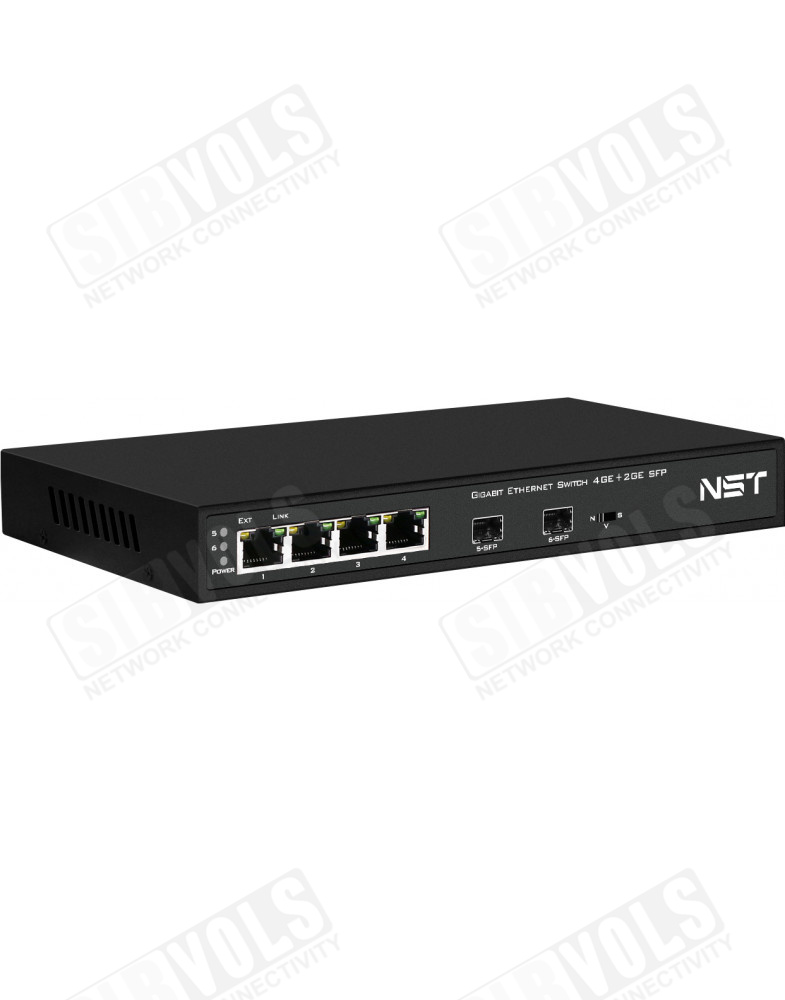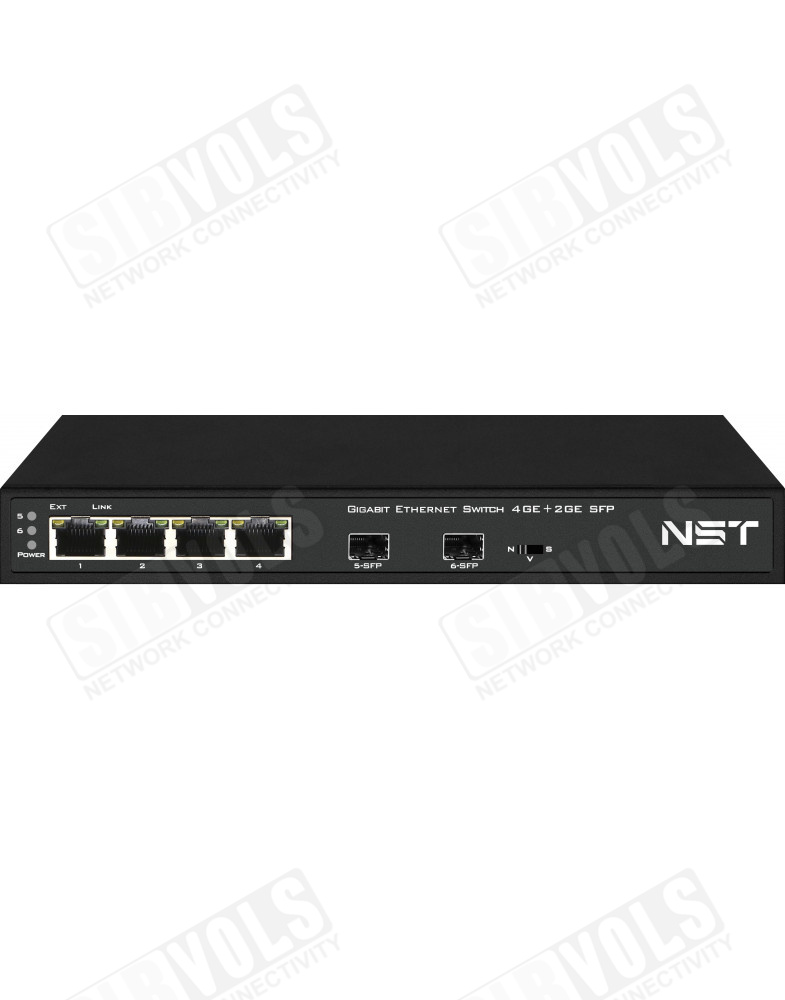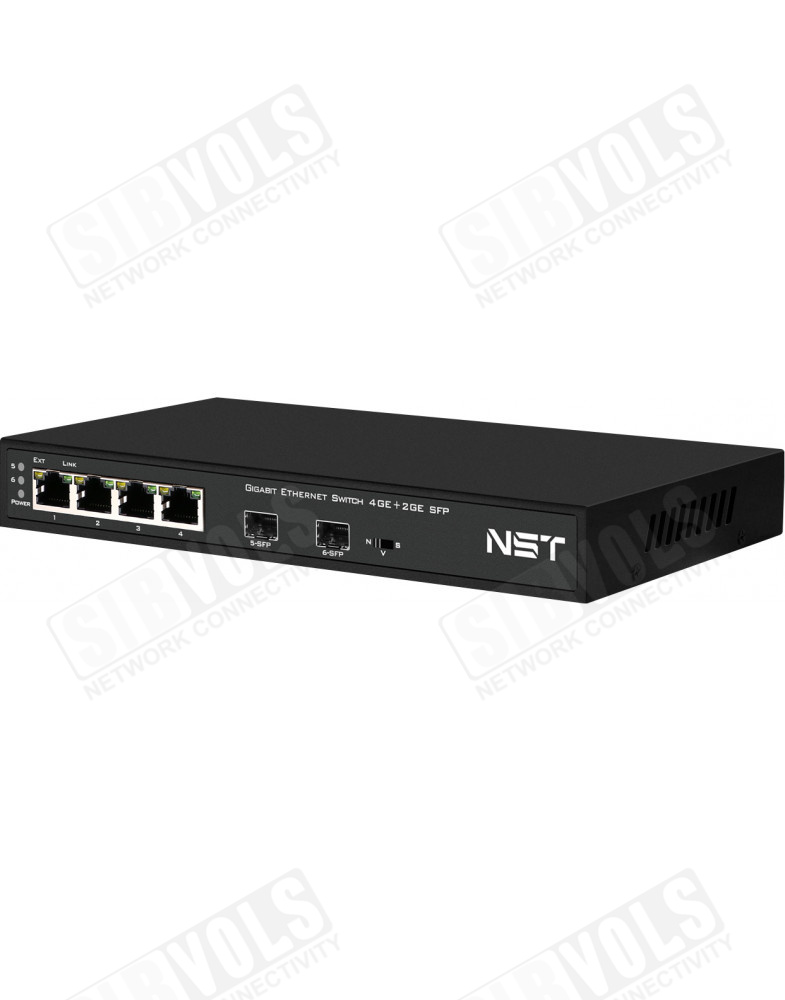 Коммутатор Gigabit Ethernet на 4 RJ45 + 2 SFP. Порты: 4 x GE (10/100/1000Base-T), 2 x GE SFP (1000Base-FX). В комплекте БП DC12V(1A). Встроенная грозозащита 3кВ. Размеры (ШхВхГ): 210x28x85мм. Рабочая температура: -10…+55°С.