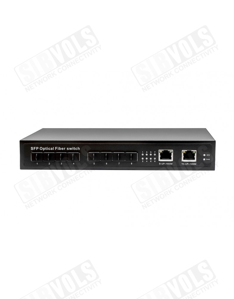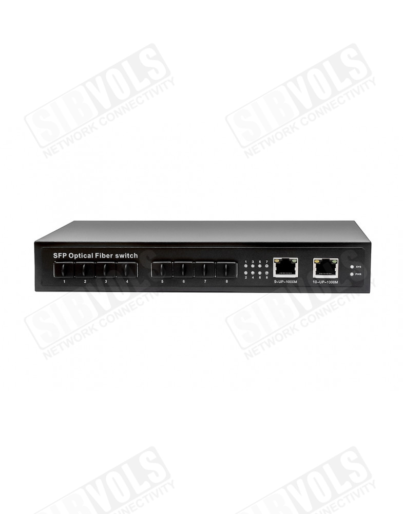 Коммутатор Gigabit Ethernet на 8 SFP + 2 RJ45 портов. Порты: 8 x GE SFP (1000Base-FX), 2 x GE (10/100/1000Base-T). В комплекте БП DC12V (2A). Размеры (ШхВхГ): 225 х 35 х 105мм. Рабочая температура: -10…+55°С.