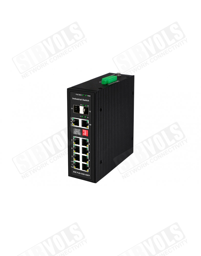 Промышленный PoE коммутатор Gigabit Ethernet на 10 портов. Порты: 2 x GE (10/100/1000Base-T) с PoE BT (до 90W) + 6 x GE (10/100/1000Base-T) с PoE (до 30W) + 2 x GE RJ45 (10/100/1000Base-T)+ 2 GE SFP (1000Base-X). Вход для резервного питания и тревожный выход. Встроенная грозозащита. Соответствует стандартам PoE IEEE 802.3af/at/bt. Автоматическое определение PoE устройств. Суммарная мощность PoE до 360W. Питание DC45-57V(385W). БП в комплект НЕ входит. Размеры (ШхВхГ): 50x188x130мм. Монтаж на DIN-рейку. Рабочая температура: -40…+80°С.