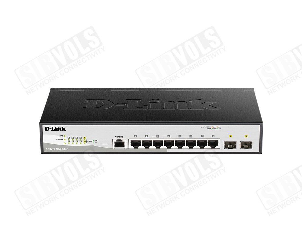 Коммутатор DGS-1210-10/ME является идеальным решением для применения в сетях Metro Ethernet. Данный коммутатор оснащен 8 портами 10/100/1000Base-T для подключения по витой паре, а также 2 SFP-портами, применяемыми для организации подключения к высокоскоростной магистрали. Защита от статического электричества 6 кВ обеспечивает устойчивость медных портов к наведенному напряжению, а полный набор функций безопасности и аутентификации защищает сеть от внутренних и внешних угроз. DGS-1210-10/ME поддерживает Auto Voice VLAN, обеспечивая максимальный приоритет для «голосового» трафика.