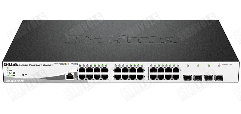 Коммутатор DGS-1210-28P/ME является идеальным решением для применения в сетях Metro Ethernet. Данный коммутатор оснащен 24 портами 10/100/1000Base-T с поддержкой PoE для подключения по витой паре, а также 4 SFP-портами, применяемыми для организации подключения к высокоскоростной магистрали. Защита от статического электричества 6 кВ обеспечивает устойчивость медных портов к наведенному напряжению, а полный набор функций безопасности и аутентификации защищает сеть от внутренних и внешних угроз. DGS-1210-28P/ME поддерживает Auto Voice VLAN, обеспечивая максимальный приоритет для «голосового» трафика.