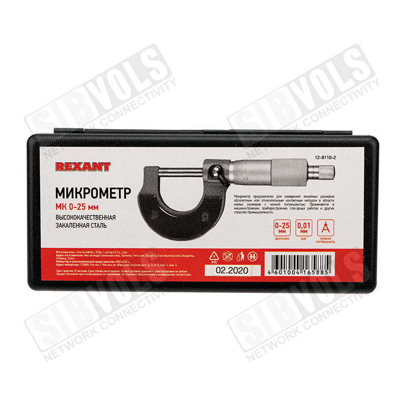 Микрометр МК 0-25мм REXANT 12-9110-2