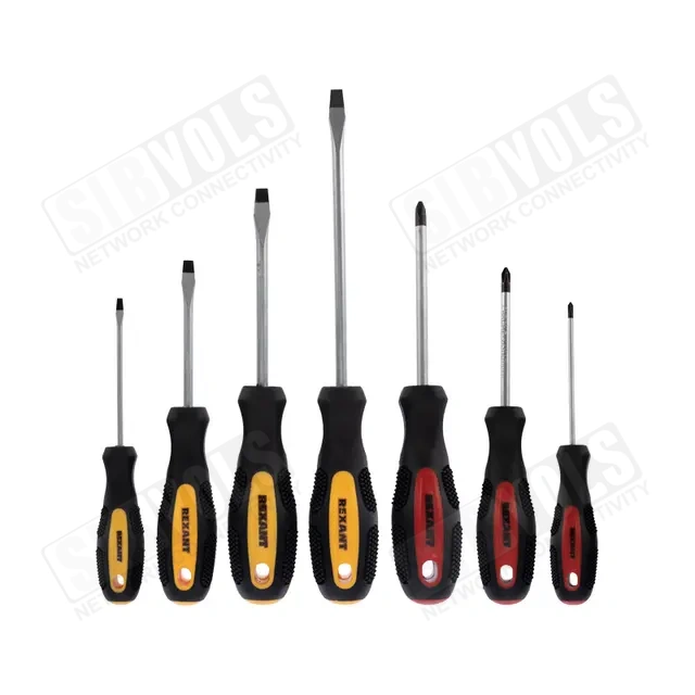 Набор отверток REXANT применяется для монтажа и демонтажа винтов, шурупов, саморезов и других крепежных изделий. Состоит из 7 отверток со шлицами SL и PH (крестовые и шлицевые) разных размеров.