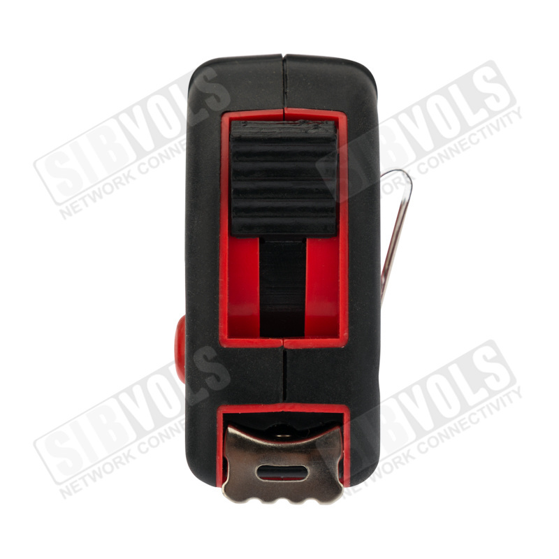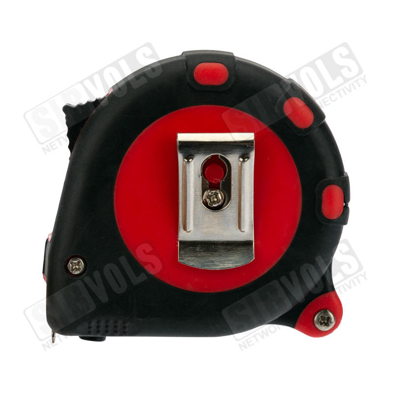На корпусе расположена клипса-зажим для фиксации рулетки на ремне, кармане или поясной сумке. Ремешок позволяет надевать инструмент на запястье, чтобы освободить руки для работы.