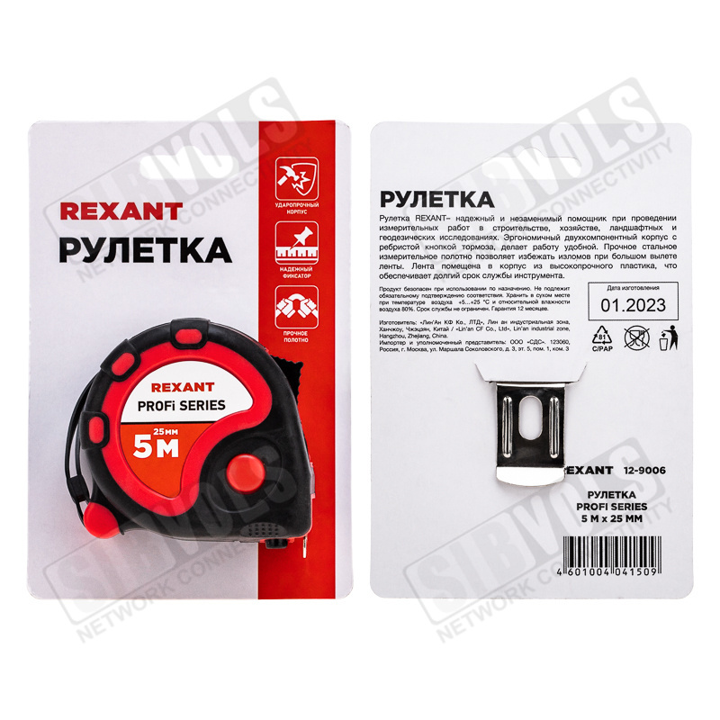 Рулетка измерительная Профи прорезиненный корпус, 5м х 25мм REXANT