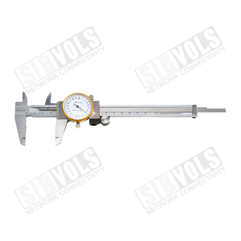 Штангенциркуль стрелочный ШЦС - 150 мм REXANT применяется в машиностроении, приборостроении и других отраслях промышленности для измерения наружных и внутренних линейных размеров, а также глубин.