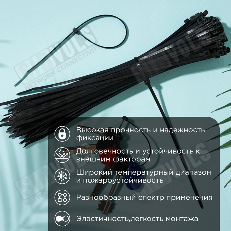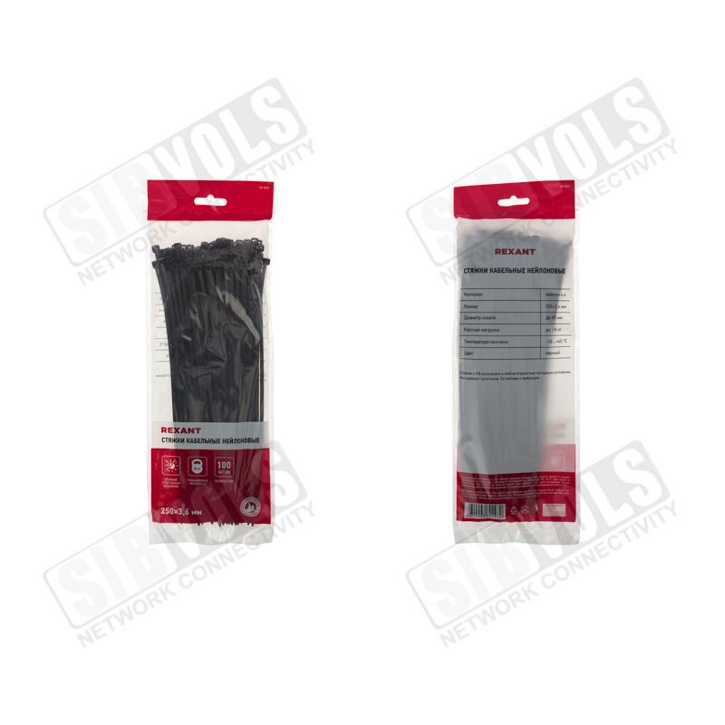 В упаковке поставляются 100 стяжек размером 250x3,6 мм.
