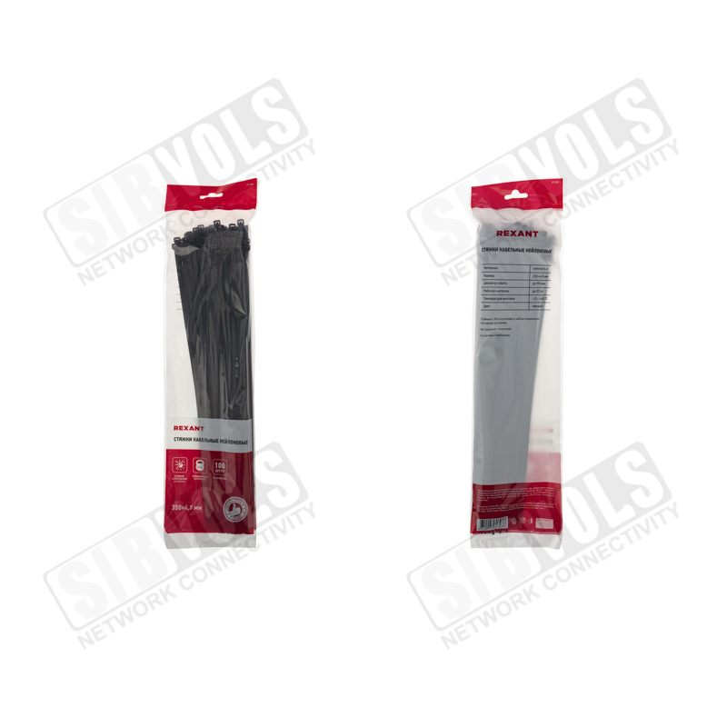 В упаковке поставляются 100 стяжек размером 350x4,8 мм.