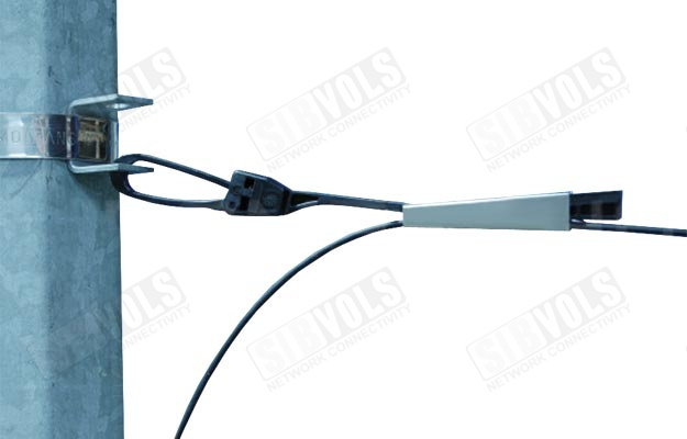 Зажим используется для монтажа на столбах и опорах в городских и загородных сетях PON DROP кабелей круглого исполнения диаметром до 8 мм. Благодаря конструктивным особенностям зажима кабель возможно подвешивать на кабельных трассах при любых углах поворота.